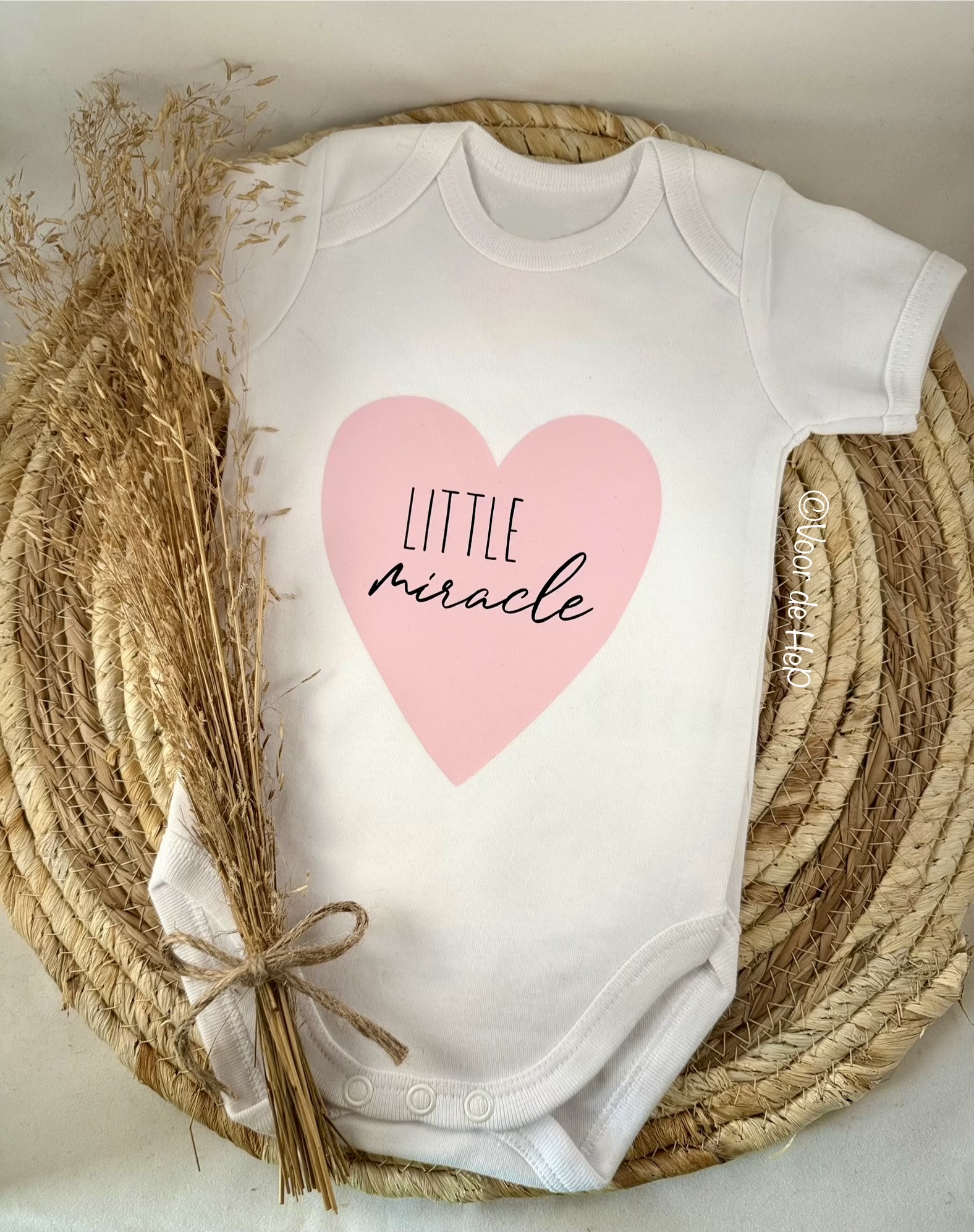 Dit rompertje met de tekst Little Mirakel is speciaal ontworpen voor baby’s die met hun komst een klein mirakel zijn.