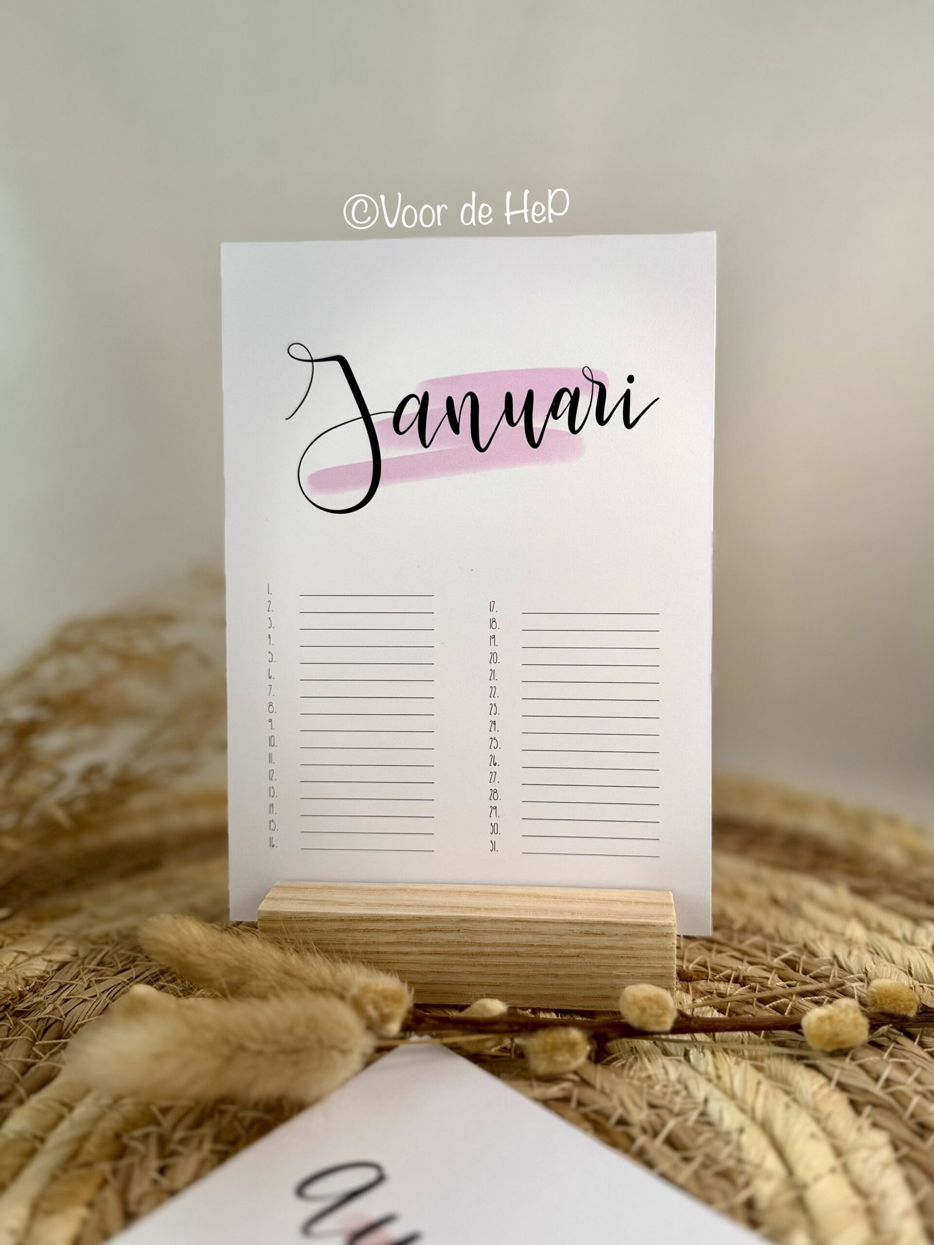 Elke maand doe je het papiertje van die maand in de standaard om mooi overzichtelijk te hebben welke verjaardagen en bijzondere gelegenheden je deze maand niet mag missen!